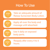 Tired of sunscreens that feel heavy, greasy, or leave you looking pale? Raissa SPF 50 Body Lotion gives you powerful sun protection with the comfort of a light body lotion. It absorbs instantly, keeps your skin soft and glowing, and leaves no whitecast so you’ll actually want to use it every day